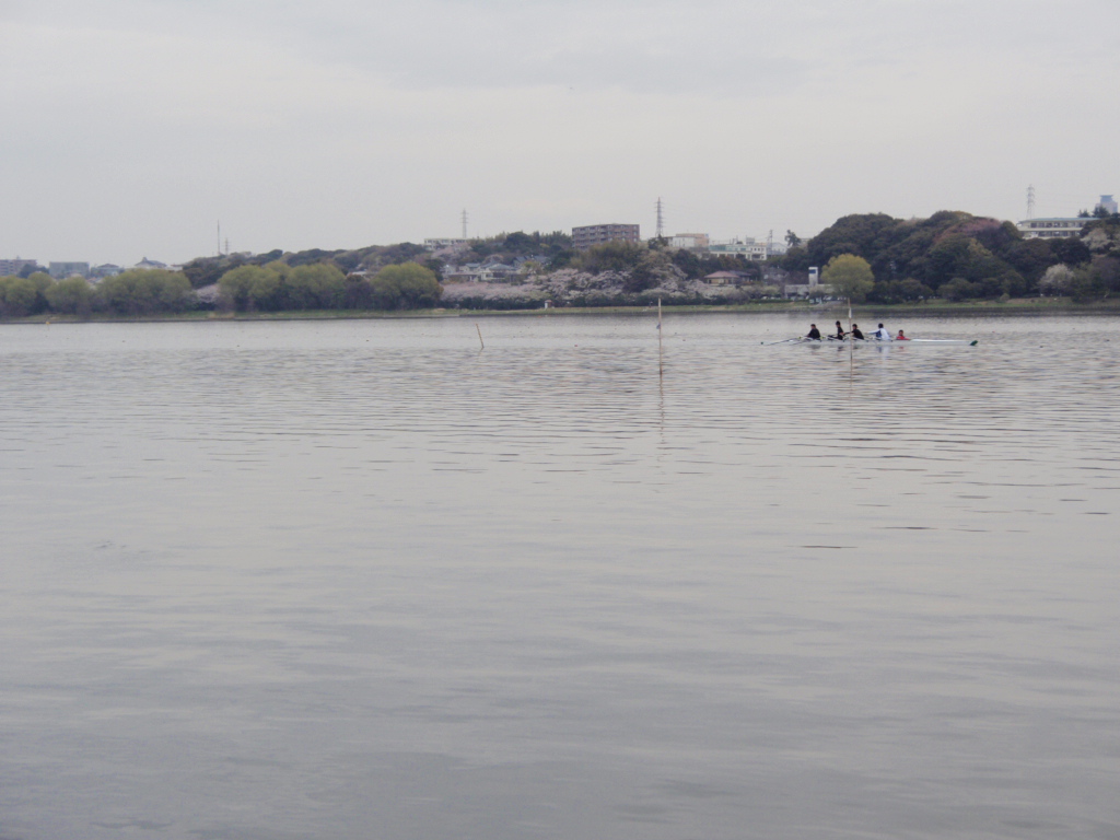 ボートを濃いでいる若者達。